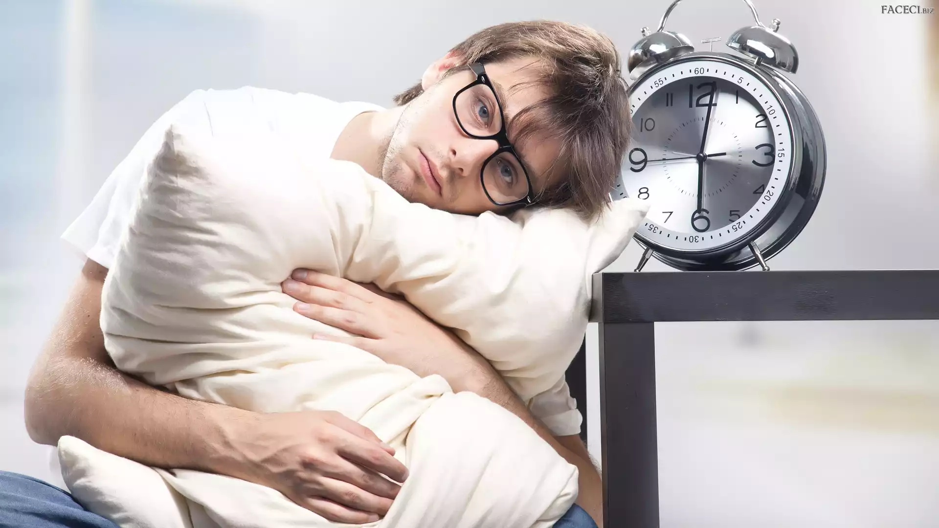 Okulary, Poduszka, Mężczyzna, Budzik - faceci.biz